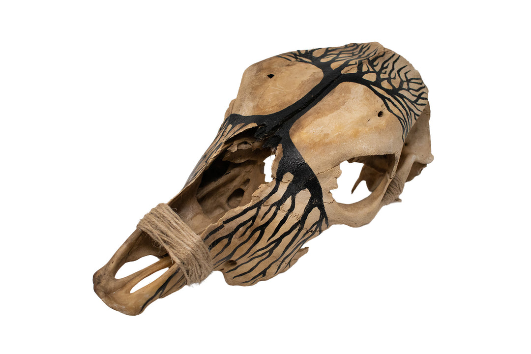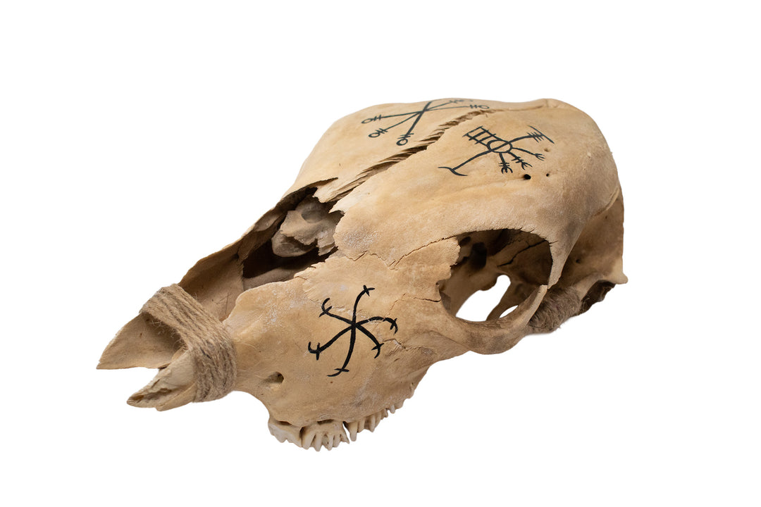 Badger Skull Altar with Serpent Engraving And Yggdrasil