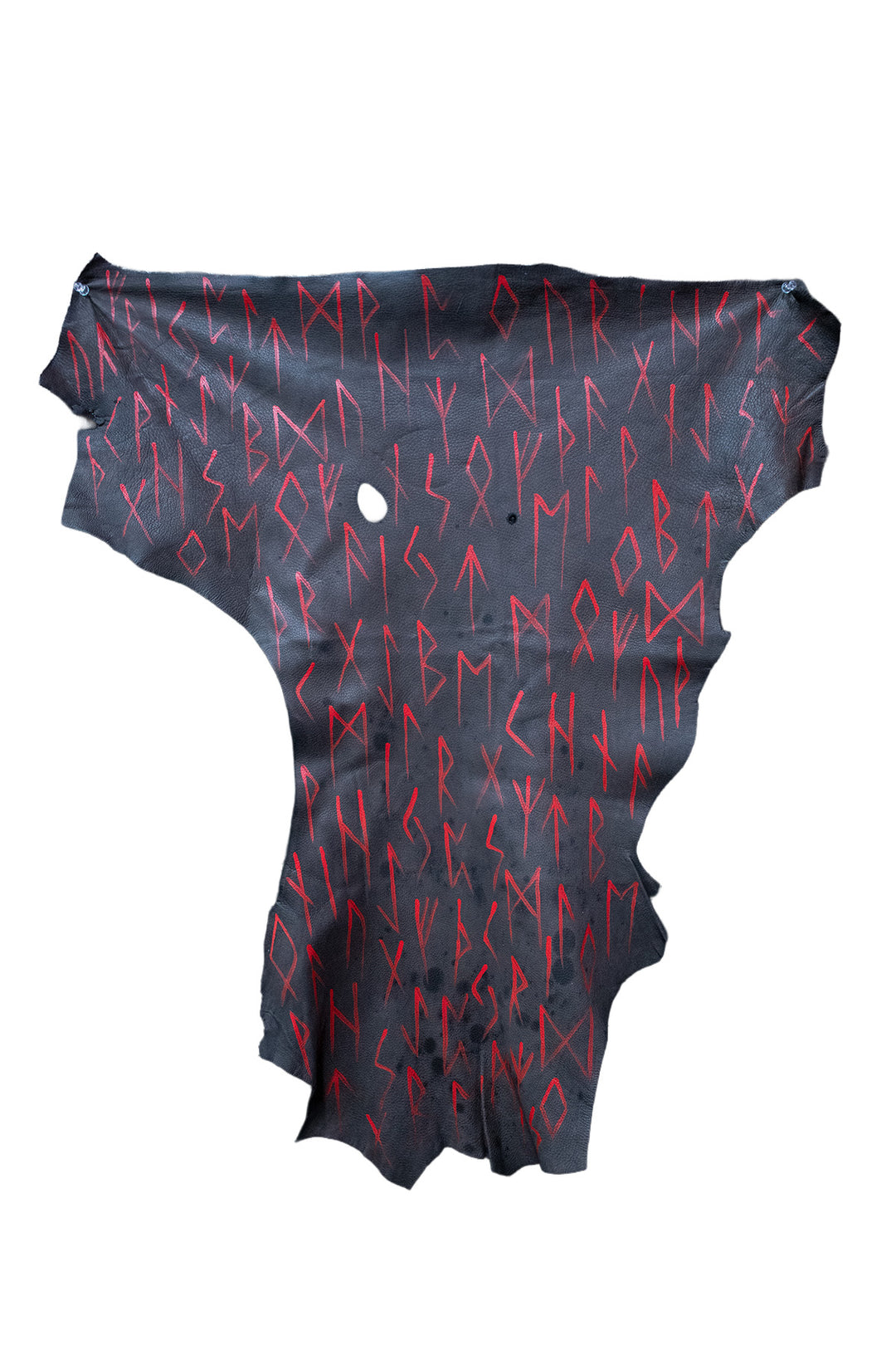Bindrunes of the norse gods - burnt rabbit hide altar cloth