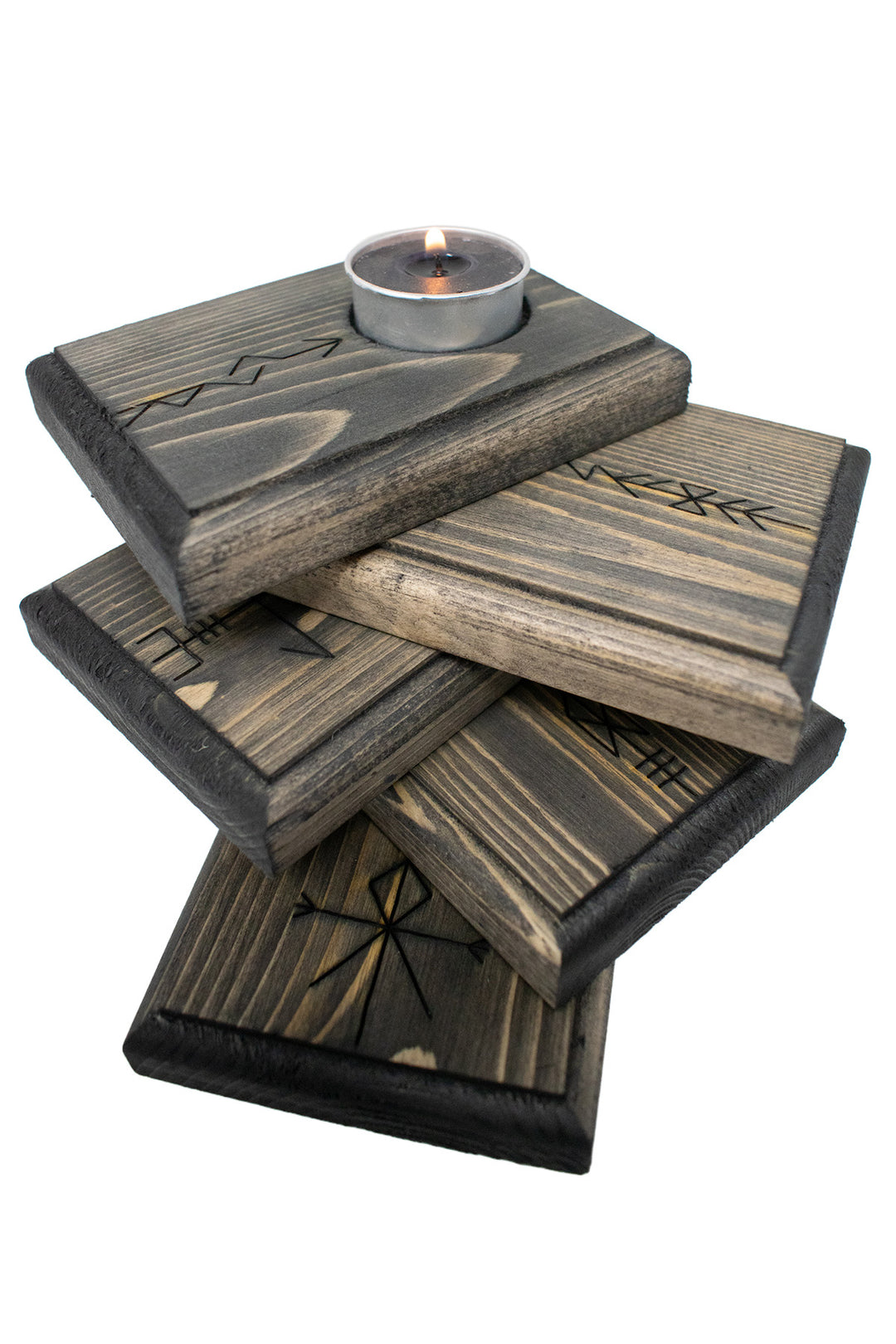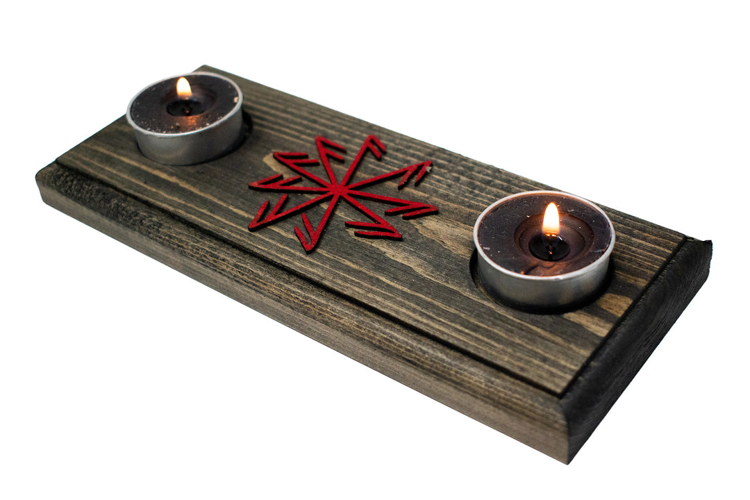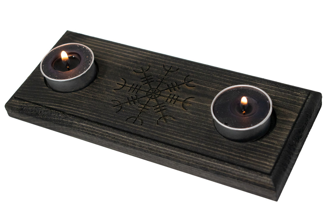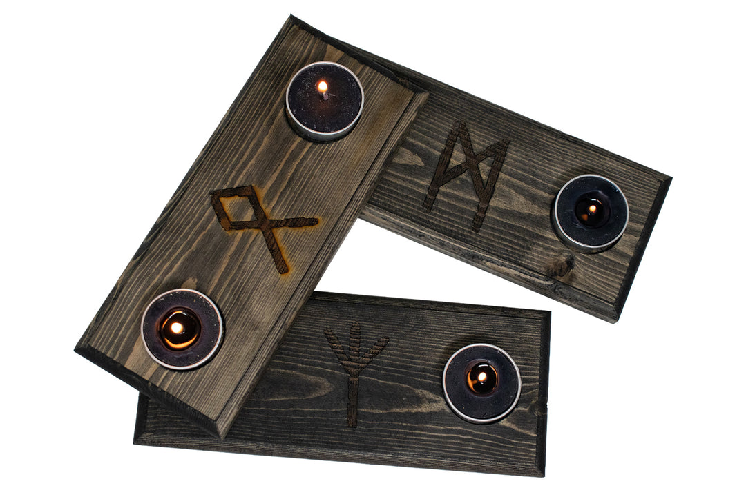 Live edge home protection bindrune candle holder