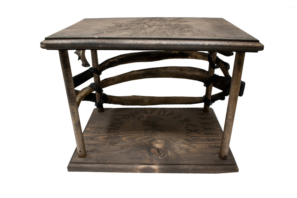 This altar is one of a kind and functions as a powerful devotional centerpiece for honoring Freya, working seidr magic, or calling upon her attributes of beauty, magic, battle craft, and sovereignty.