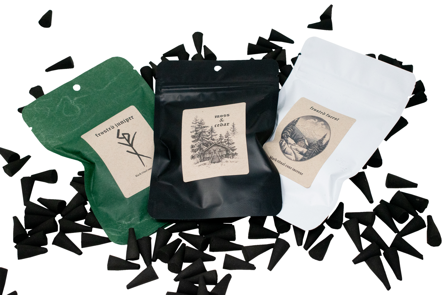 Summon presence with every cone. These handmade cones are created for ritual use, offerings, and altar work. Smoke carries intention, scent becomes the offering. Each blend is carefully mixed and hand-dipped in small batches by the owner of Oreamnos Oddities, using pure essential oils selected for their ritual correspondences and aromatic clarity.