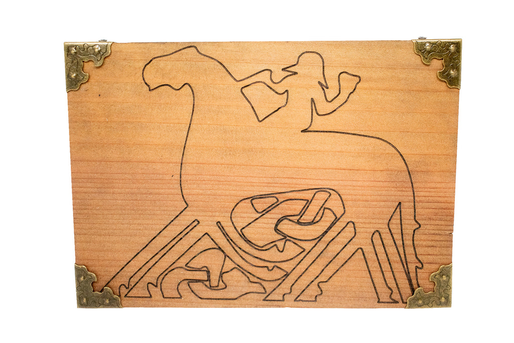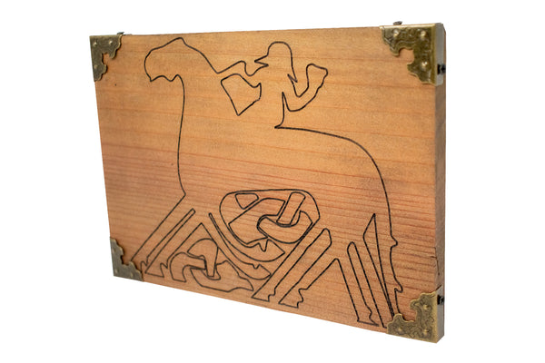 This wall hanger features Odin alongside his eight legged horse Sleipnir, engraved in a clean, symbolic line style. Odin is the god of wisdom, knowledge, magic, and sacrifice, while Sleipnir is his trusted companion and the steed that carries him between worlds. Together, they represent movement between realms, spiritual travel, insight gained through effort, and the pursuit of deeper understanding.
