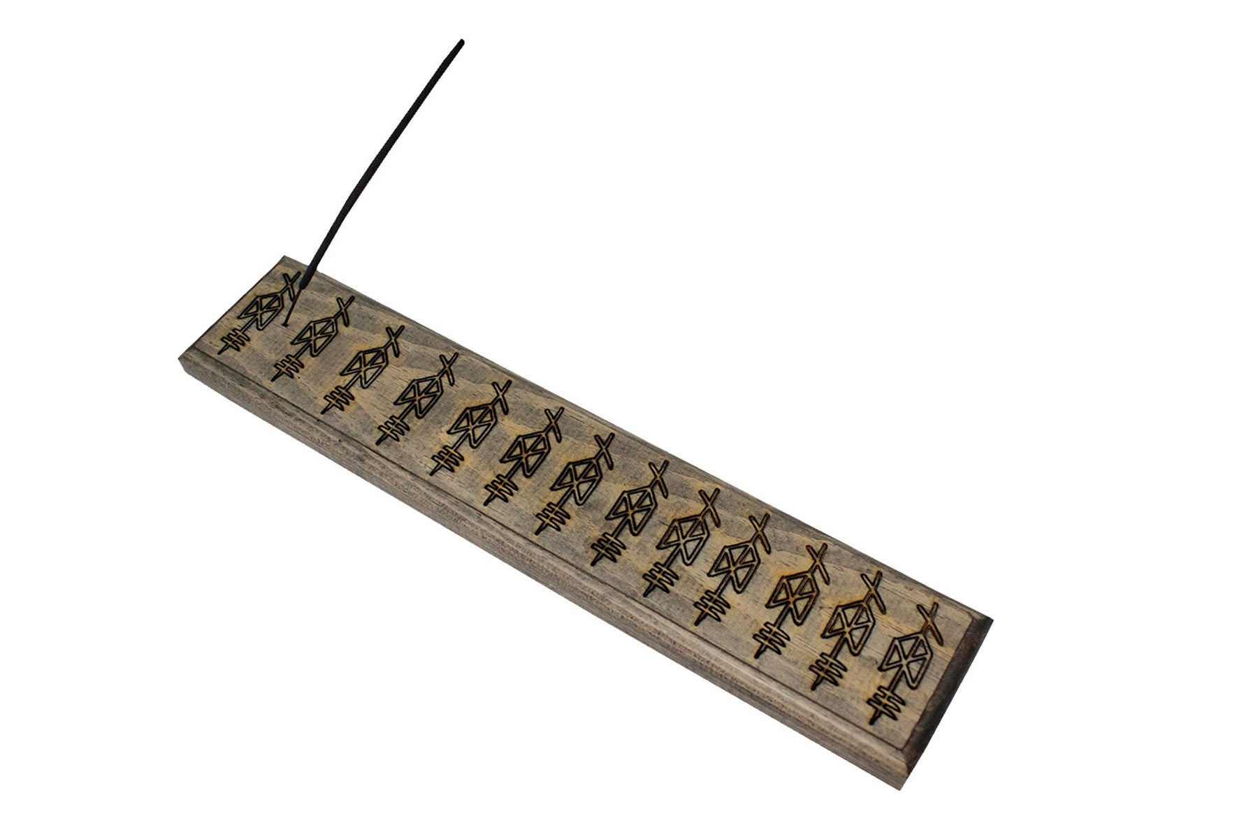 These incense dishes are hand engraved with a bindrune to be used to better connect to the Norse god Odin. It was created using the runes Othala, Dagaz, Isa and Nauthiz, spelling "ODIN". Option 2 is encircled by the 24 Elder Futhark runes.