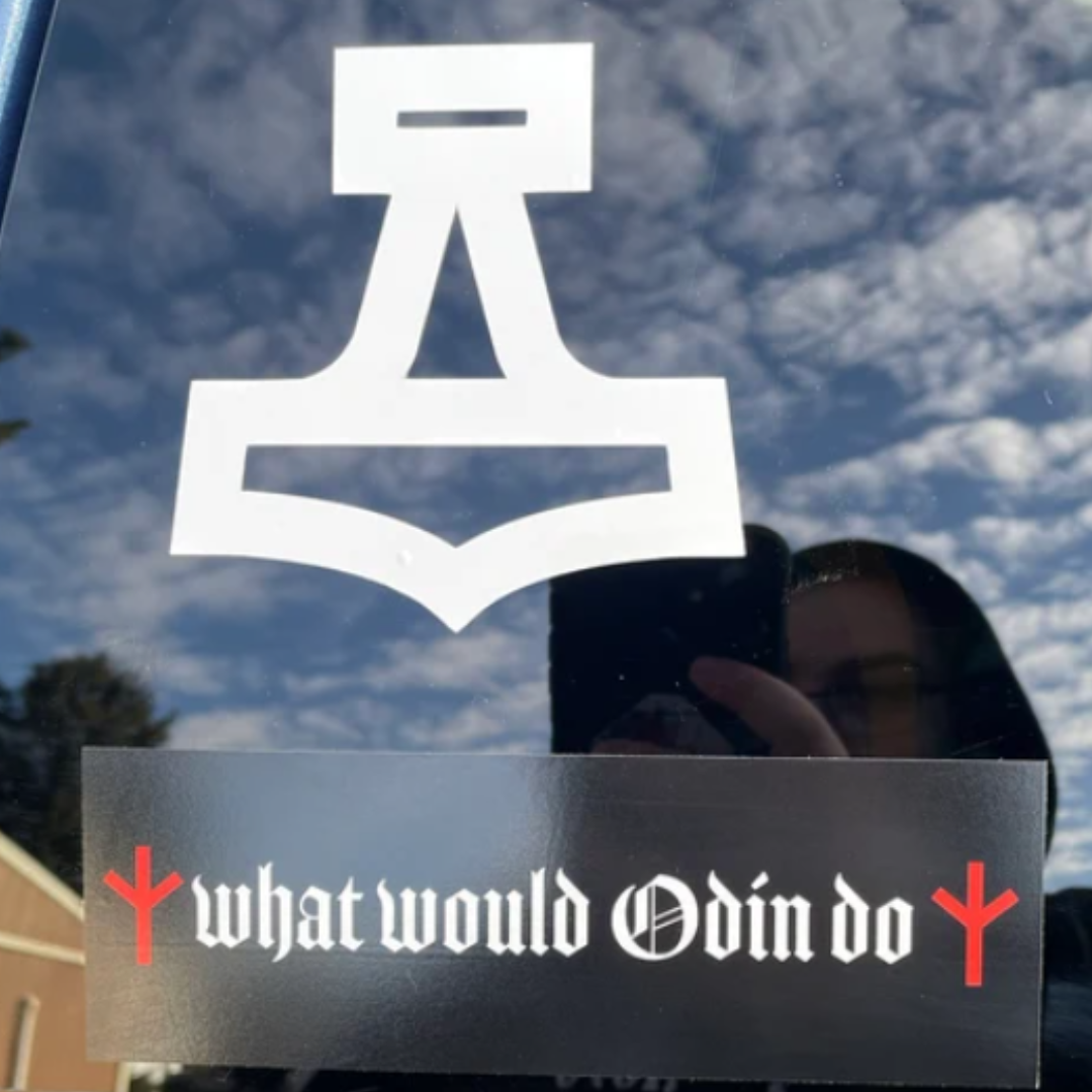 I bought this for my truck and could not be happier! It is the perfect size for the top corner of my rear windshield. Its not overly gaudy nor is it an eyesore, but rather lets me proudly display my hammer and looks great, balance-wise, across from my safe travels bindrune. So far it has held up through freezing cold, blistering heat, and massive storms and still looks as good as the day it first went on! 10/10 all day!