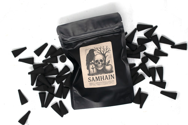 Each cone carries the breath of Samhain, the final harvest, the darkness of fallen leaves, and the smoke of sacred fires rising as an offering. The fragrance recalls orchards fading into shadow, the crackle of ritual flames, and the earth returning to stillness. It was blended to mirror the cycle of death and rebirth, to honor the ancestors as they draw near, and to shield the practitioner as the veil opens. This is not only the scent of autumn’s end, but the smoke of passage, carrying prayers to the unseen and anchoring protection in your rite.